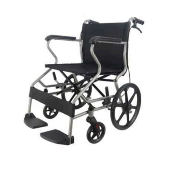 Silla de Transporte en Acero, la más económica de su segmento. Con apoyabrazos y pedanas fijas.